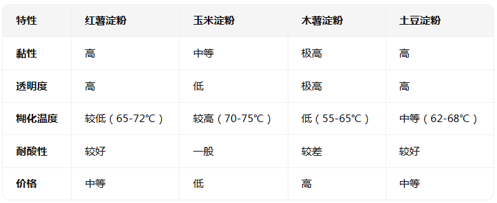 天然無添加:相比木薯淀粉或玉米淀粉,紅薯淀粉更少經過化學改性,適合追求天然的消費者。